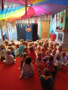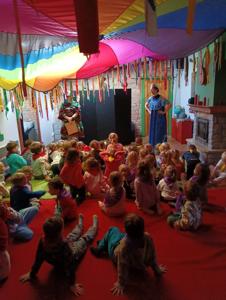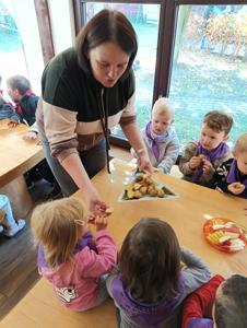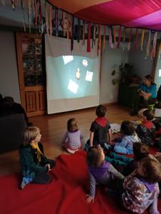 Dzięki funduszom Rady Rodziców w październiku wybraliśmy się całym naszym przedszkolem do Krainy Pieczonego Ziemniaka. Podczas interaktywnego spektaklu Królowa Marysieńka i Tajemniczy Podróżnik w Czasie dzieci dowiedziały się skąd pochodzą ziemniaki i jak znalazły się na polskich talerzach. Przedszkolaki mogły zrobić ziemniaczane dzieło sztuki, pobawić się w ziemniaczane zabawy i wystartować w ziemniaczanej olimpiadzie.
