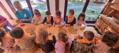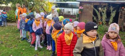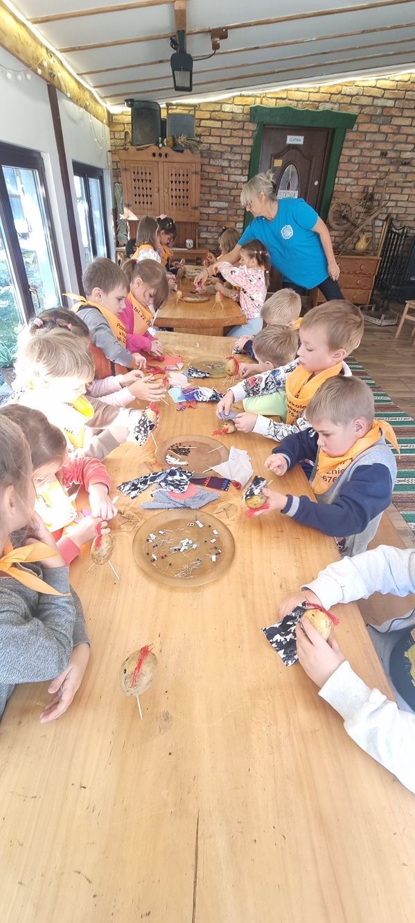 Dzięki funduszom Rady Rodziców w październiku wybraliśmy się całym naszym przedszkolem do Krainy Pieczonego Ziemniaka. Podczas interaktywnego spektaklu Królowa Marysieńka i Tajemniczy Podróżnik w Czasie dzieci dowiedziały się skąd pochodzą ziemniaki i jak znalazły się na polskich talerzach. Przedszkolaki mogły zrobić ziemniaczane dzieło sztuki, pobawić się w ziemniaczane zabawy i wystartować w ziemniaczanej olimpiadzie.