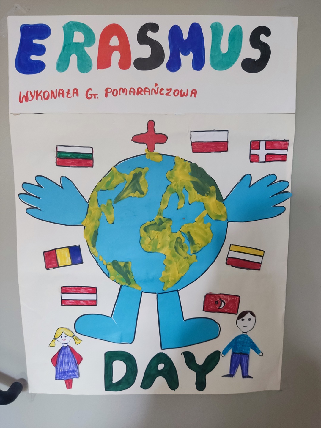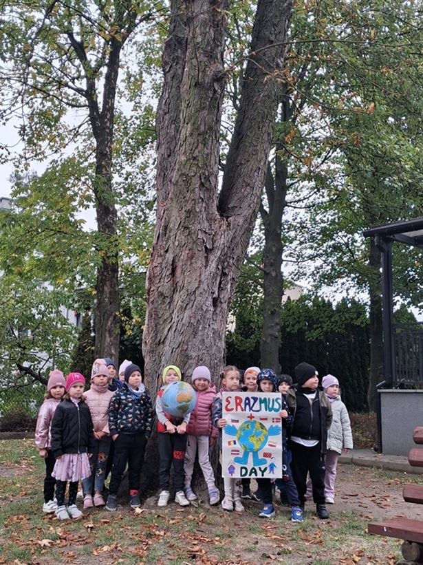 Nasze przedszkole włączyło się w obchody Święta Erasmusa - "Erasmus Days". Był to czas, w którym cała społeczność przedszkola korzystała z doświadczeń nauczycieli zdobytych podczas mobilności. Grupa Niebieska uczestniczyła w zajęciach typu " outdoor" podczas których dzieci wykonały pracę plastyczną z liści "Europejskie drzewo Erasmus", Grupa Pomarańczowa wykonała "Erasmusowy plakat", dzieci ze wszystkich grup wzięły udział w warsztatach "Kulinarna podróż po Europie" a w ogrodzie przedszkolnym posadzone zostało drzewo Erasmusa.
