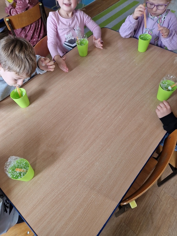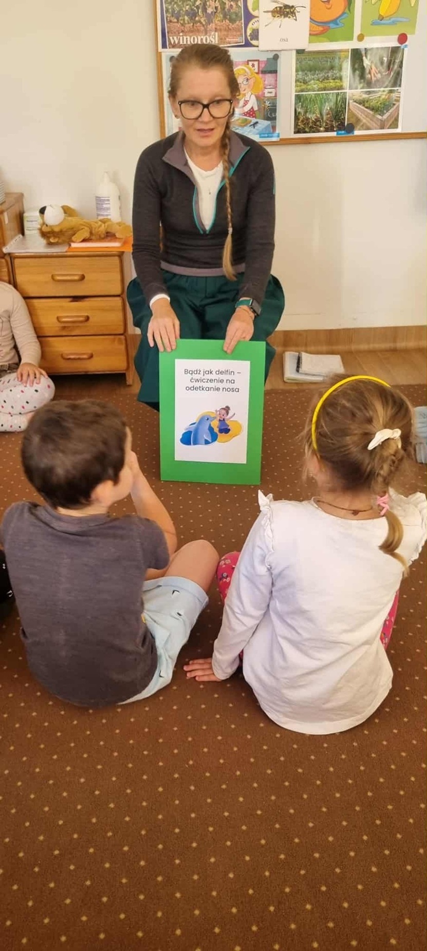 Przedszkolaki z najstarszych grup – pomarańczowej i niebieskiej - uczestniczyły w innowacji „Zabawy oddechowe – uruchom nos!” opracowanej i prowadzonej przez logopedę – Wiesławę Kaźmierzak. Głównym celem tego programu była profilaktyka i uświadamianie dzieci w tematyce oddychania nosem oraz kształtowanie prawidłowego nawyku oddychania nosem. Zajęcia obejmowały cykl ośmiu spotkań, podczas których dzieci wykonywały różnorodne ćwiczenia i zabawy oddechowe ucząc się, że oddychanie nosem wpływa na ich lepszą odporność, koncentrację uwagi, lepsze wyniki w nauce, sen, a także korzystniejszy wygląd twarzy.