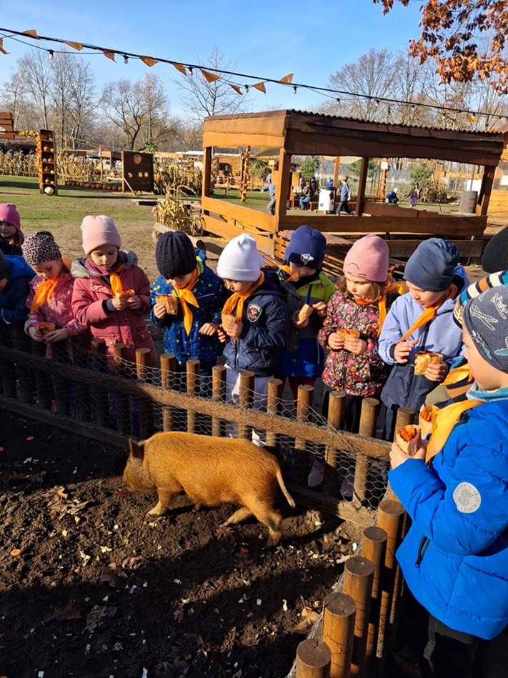 Dzięki funduszom Rady Rodziców w listopadzie wybraliśmy się całym naszym przedszkolem do Dyniolandii, miejsca edukacyjno-sensorycznego z mini zoo oraz parkiem rozrywki. Dzieci pokonały edukacyjną ścieżkę sensoryczną, odnalazły ścieżki do wyjścia w labiryntach, poznały wiele zwierząt w mini zoo oraz ciekawie spędziły czas wolny :-)